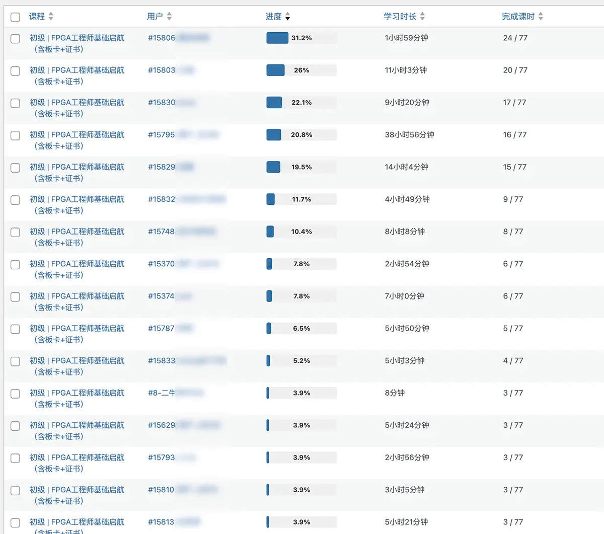 全部课程,同学们学习进度