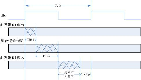 由上图可知,建立时间容限=Tclk-Tffpd(max)-Tcomb(max)-Tsetup,根据建立时间容限 ≥ 0 , 也 就 是