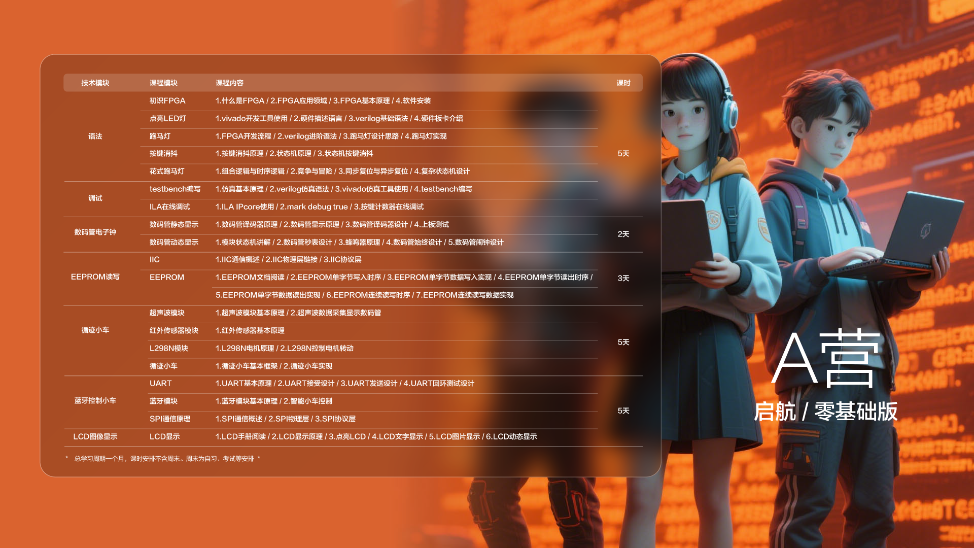 成电国芯2025年FPGA夏令营重磅升级,分为A营(基础工程营)与B营(高阶工程营),覆盖从硬件开发到算法设计的全链路技能培养。