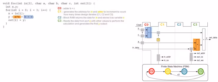 与Verilog和VHDL设计不同,我们用来描述设计的高级语言是没有时间的。这意味着当HLS工具将C转换为Verilog或VHDL时,它必须经历多个阶段来创建输出RTL