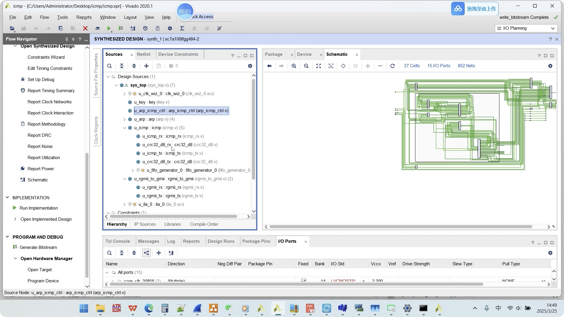 首先,ICMP协议这块加料很猛。以前学网络协议可能光知道理论,这次直接带你在FPGA上动手实现ICMP功能。比如用Verilog写个能自动响应Ping请求的模块,配合千兆网口做真实数据包交互。有学员说做完实验终于搞懂了为啥Ping不通的时候要查路由表,这些细节对搞通信设备的同学太实用了。