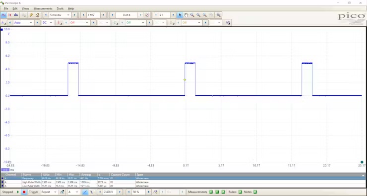 使用示波器,当我移动操纵杆时,我能够测量PWM信号。