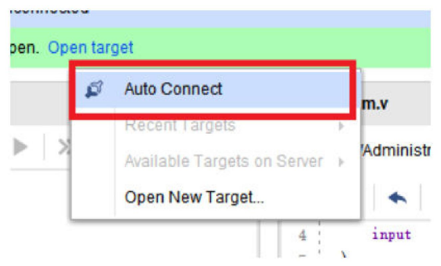 弹出的下拉界面选择点击Auto target,自动连接目标开发板。点击之后待连接完成。