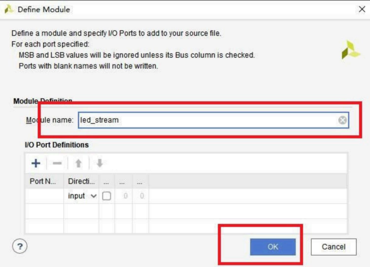 点击Finish之后,弹出对应文档的模块名称。这里我们默认led_stream,然后点击OK。