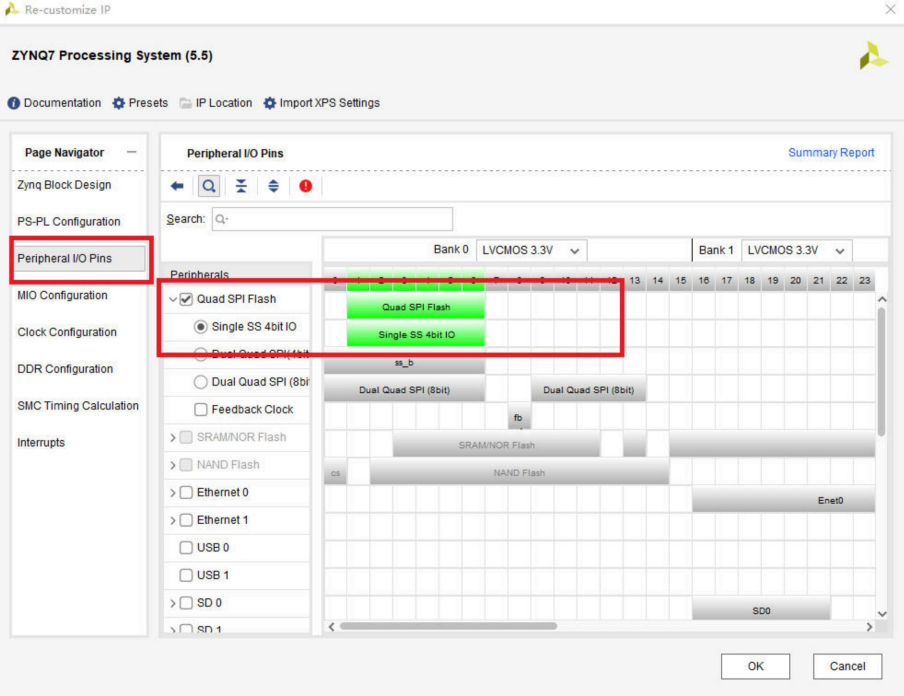 然后,在peripheral I/O Pins,选中Quad SPI Flash 勾选第一项: