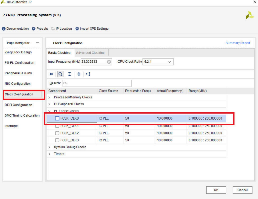 然后,Clock Configuration 勾掉PL Fabric Clocks下的 FCLK_CLK0: