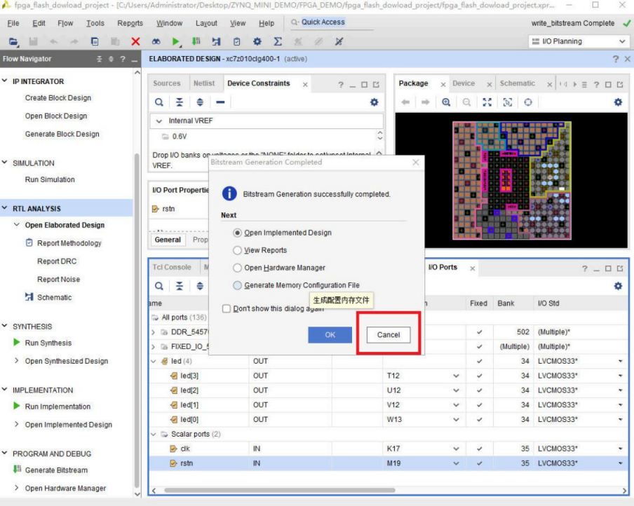 到此,我们开始准备制作FPGA启动配置文件和固化到FLASH。