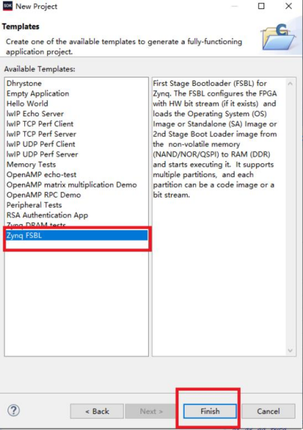 接着,我们选则Zynq FSBL工程模板,最后点击Finish完成。