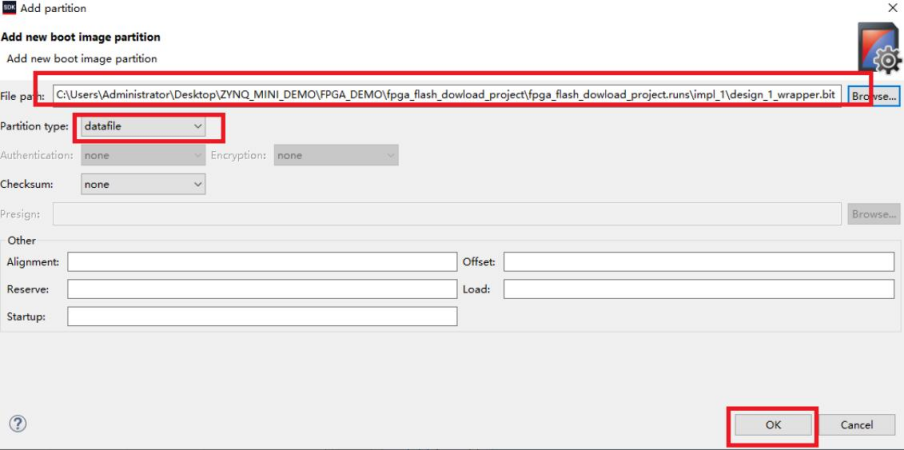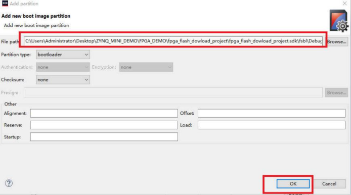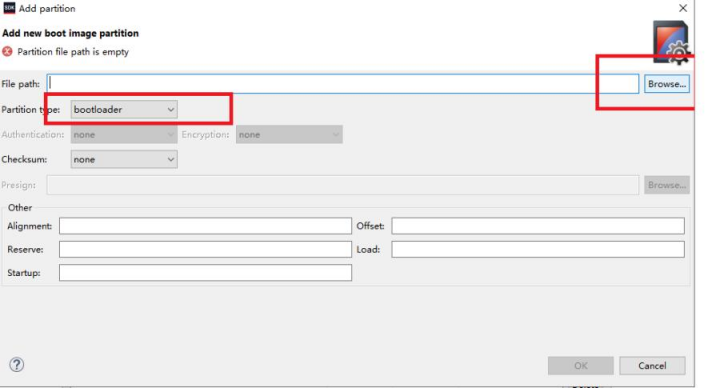 点击弹出对话框中的browse进行选择注意Partition type默认是bootloader: