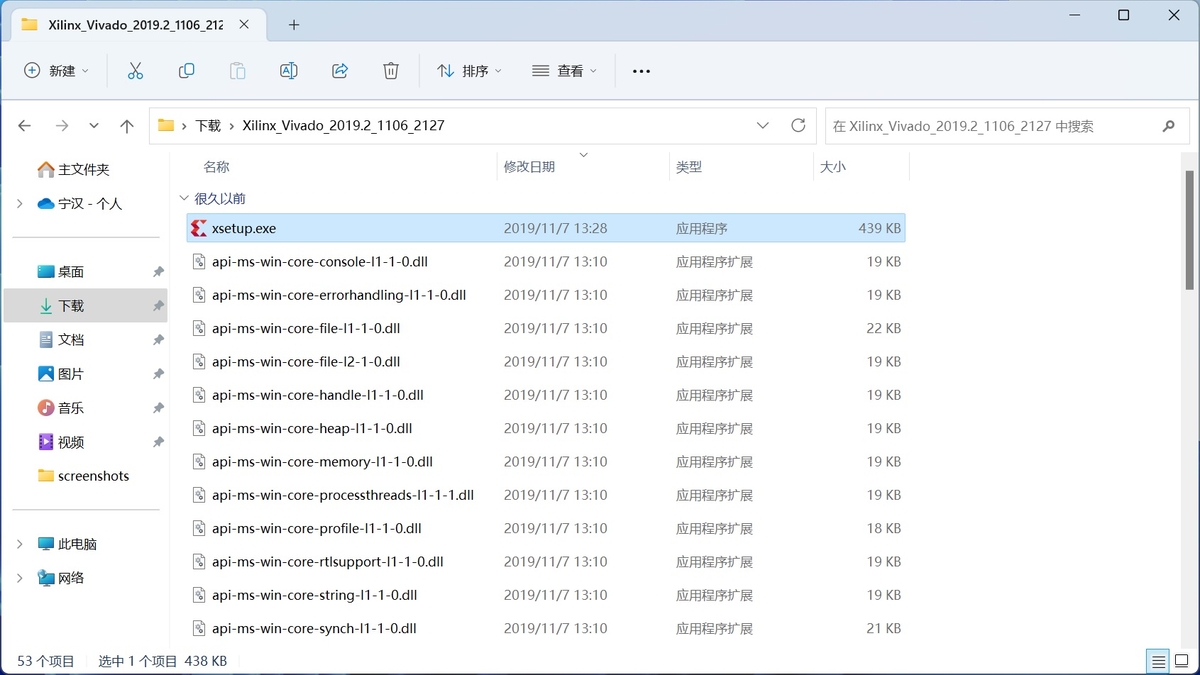 进入安装目录 Xilinx_Vivado_2019.2_1106_2127,双击 xsetup.exe,启动安装程序。