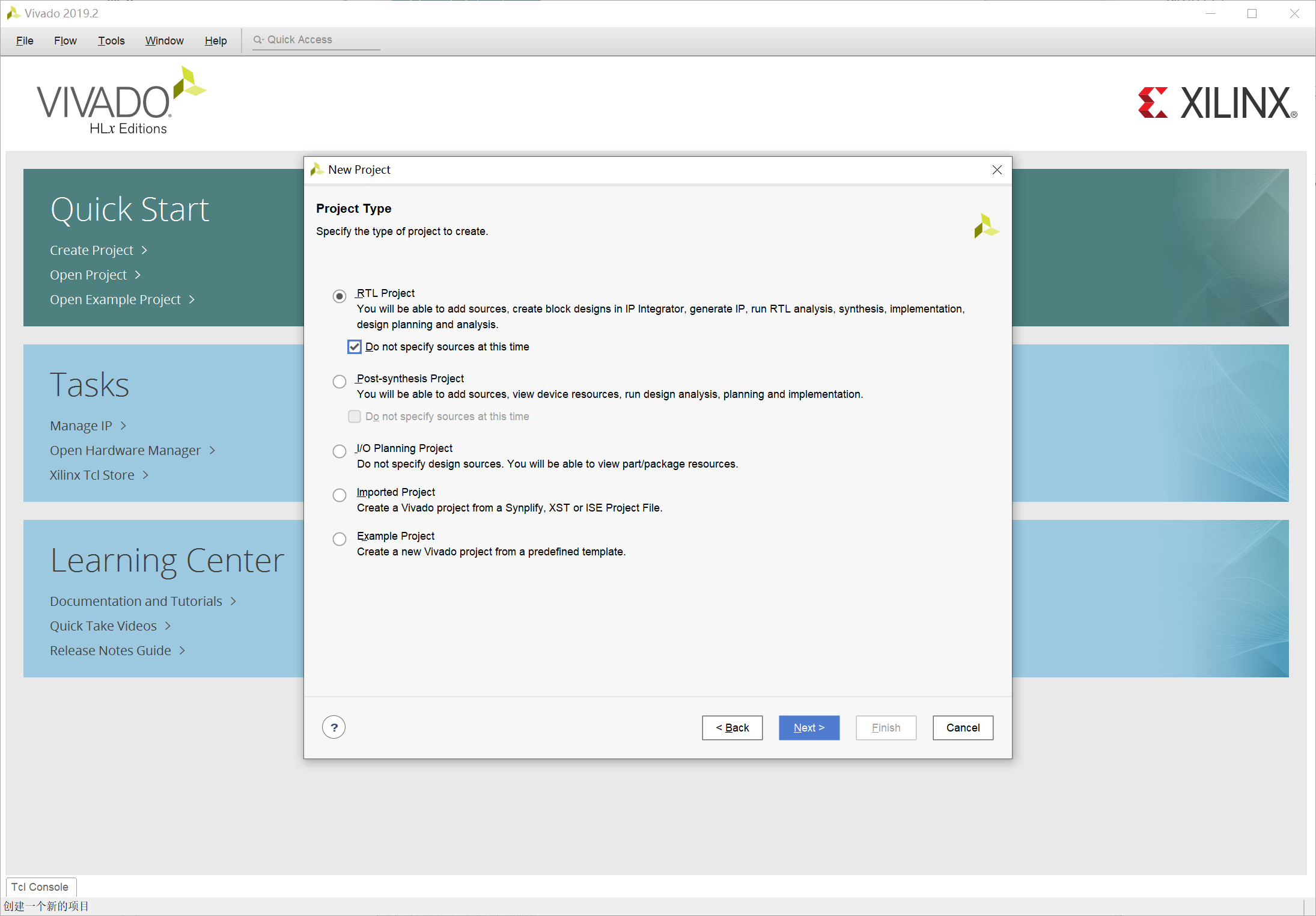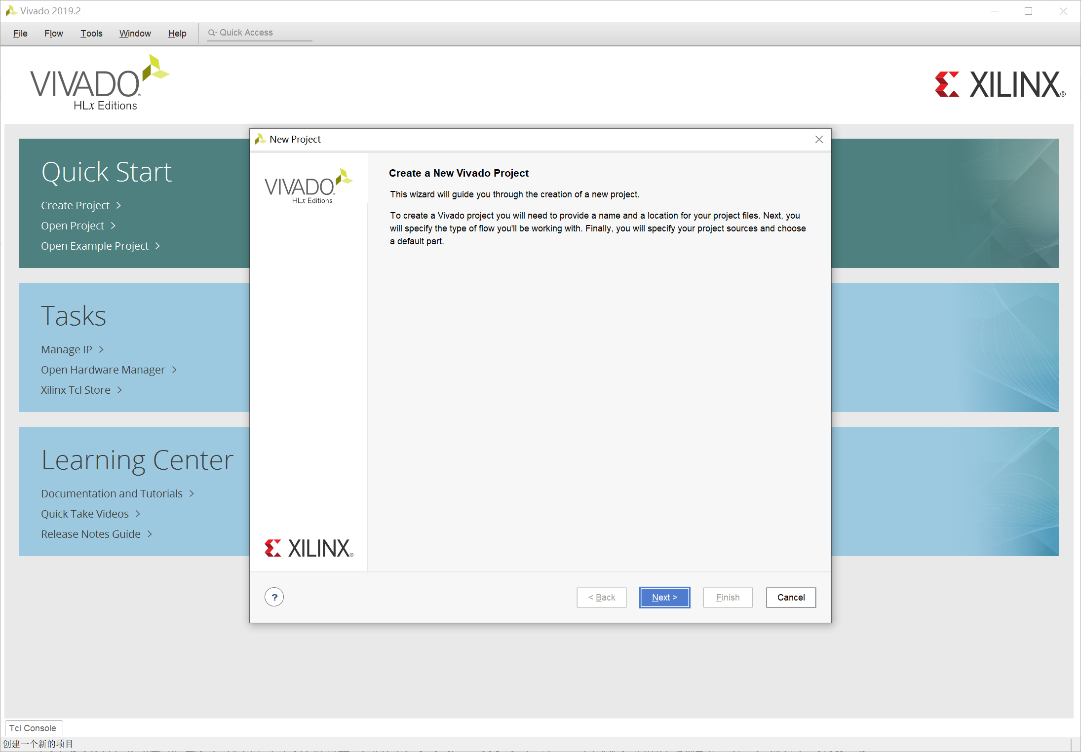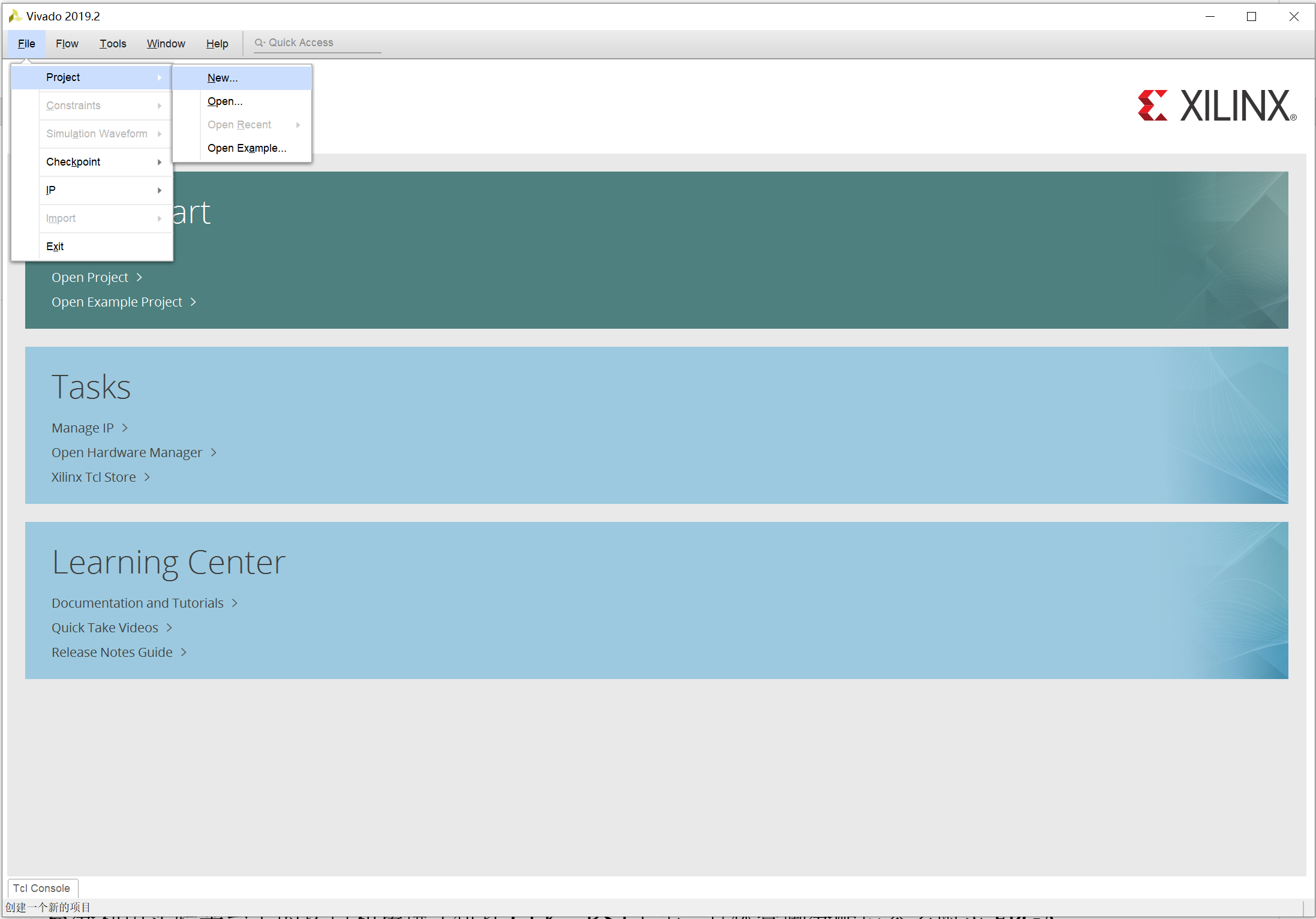首次进入 Vivado 的界面: