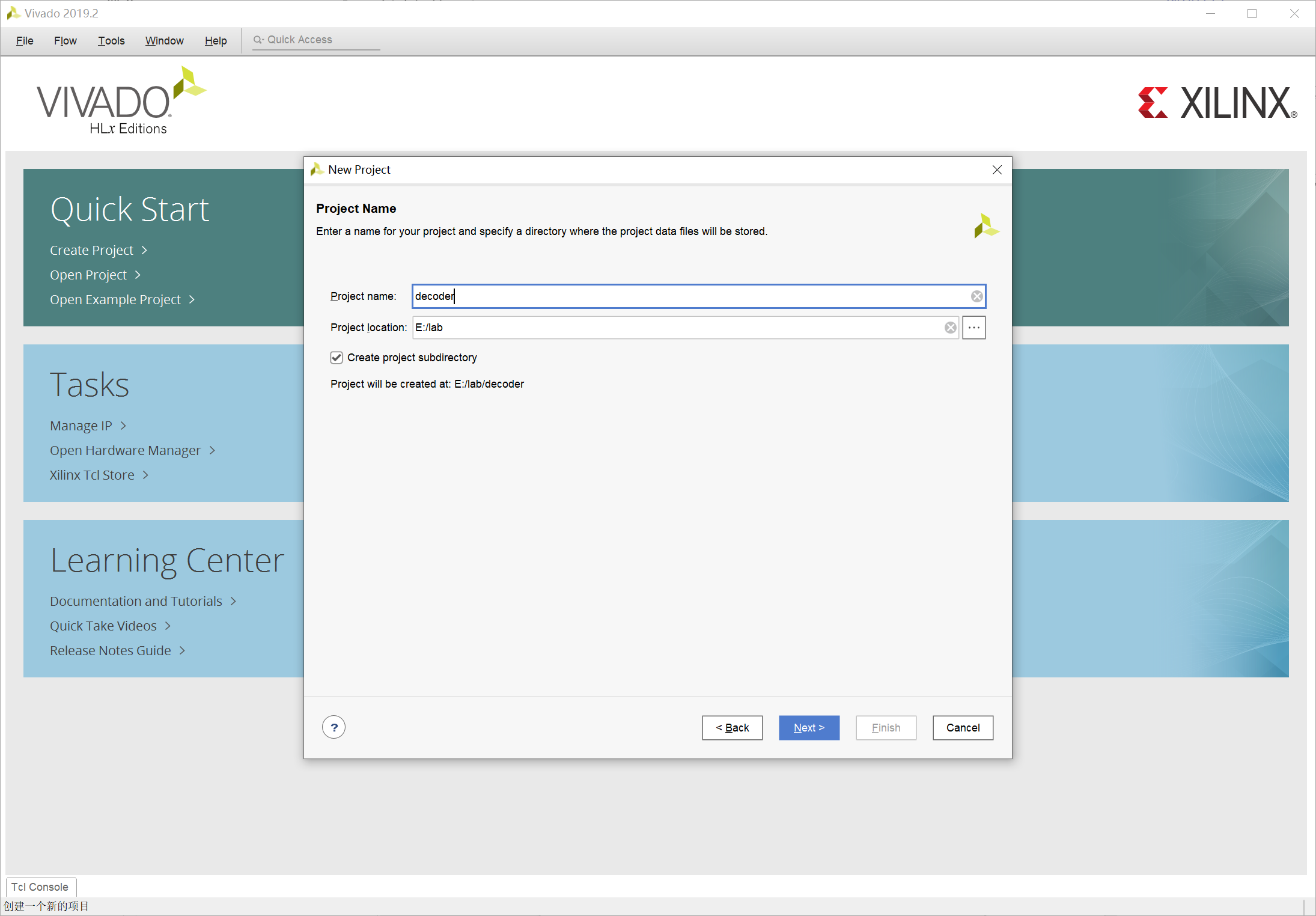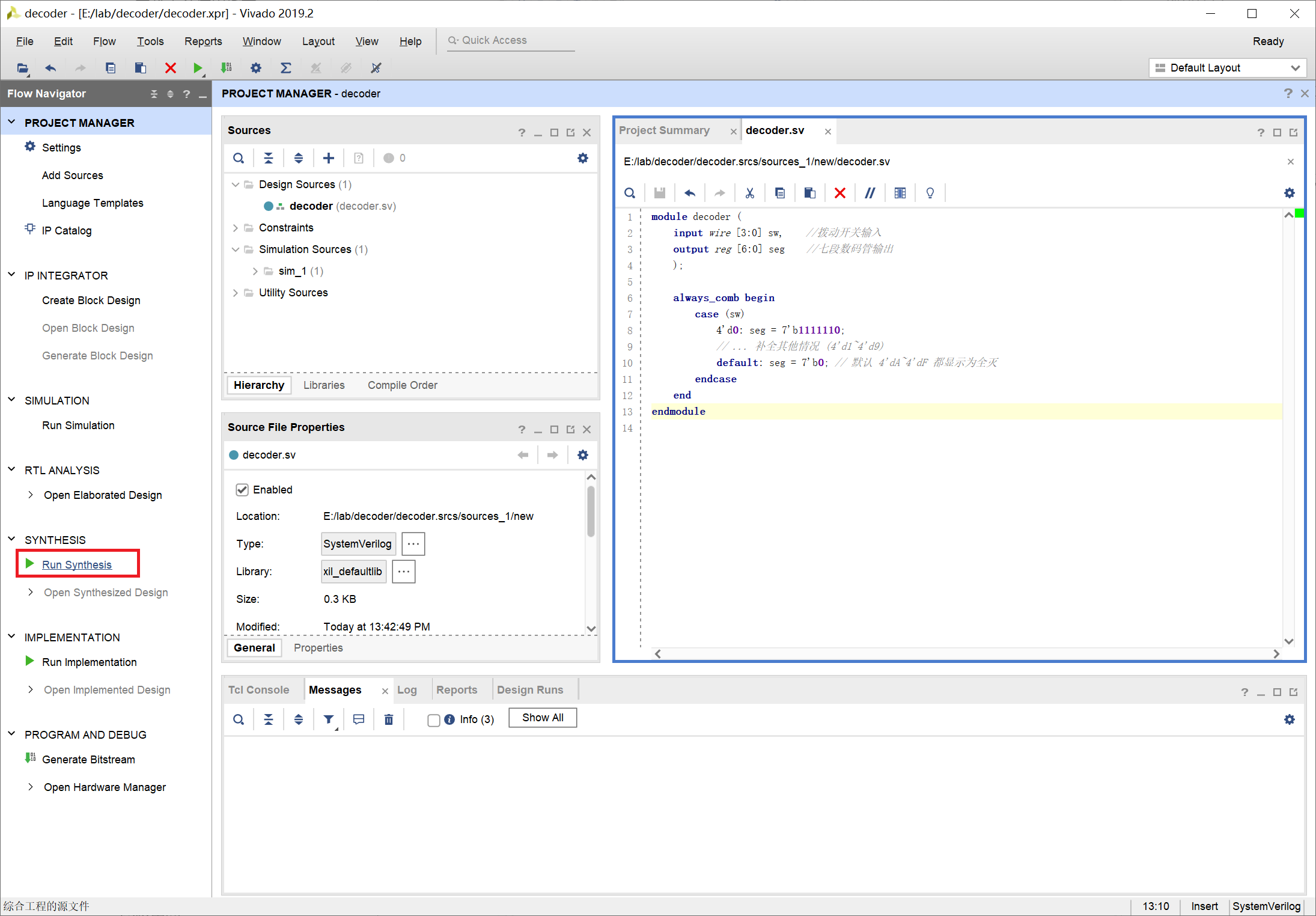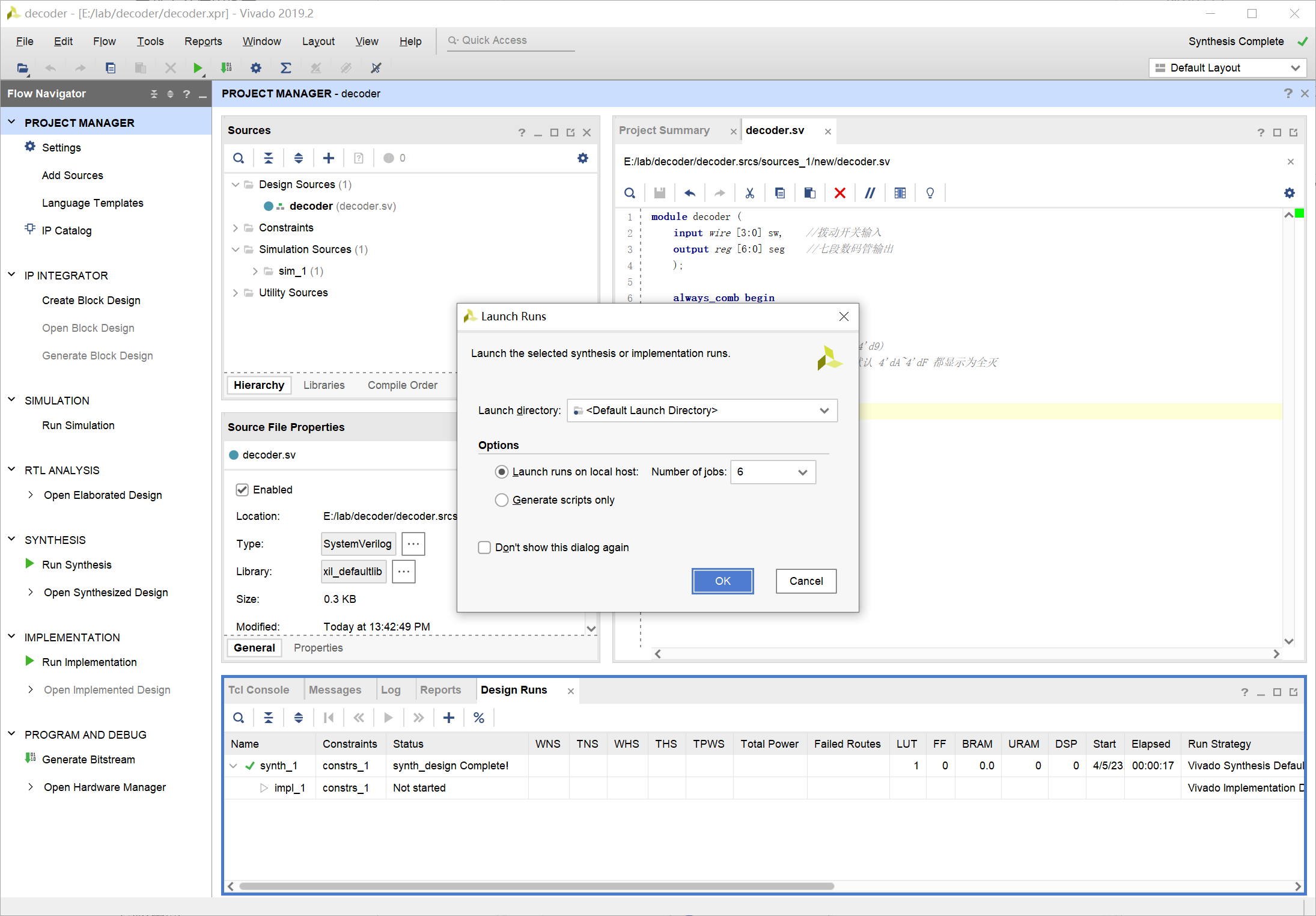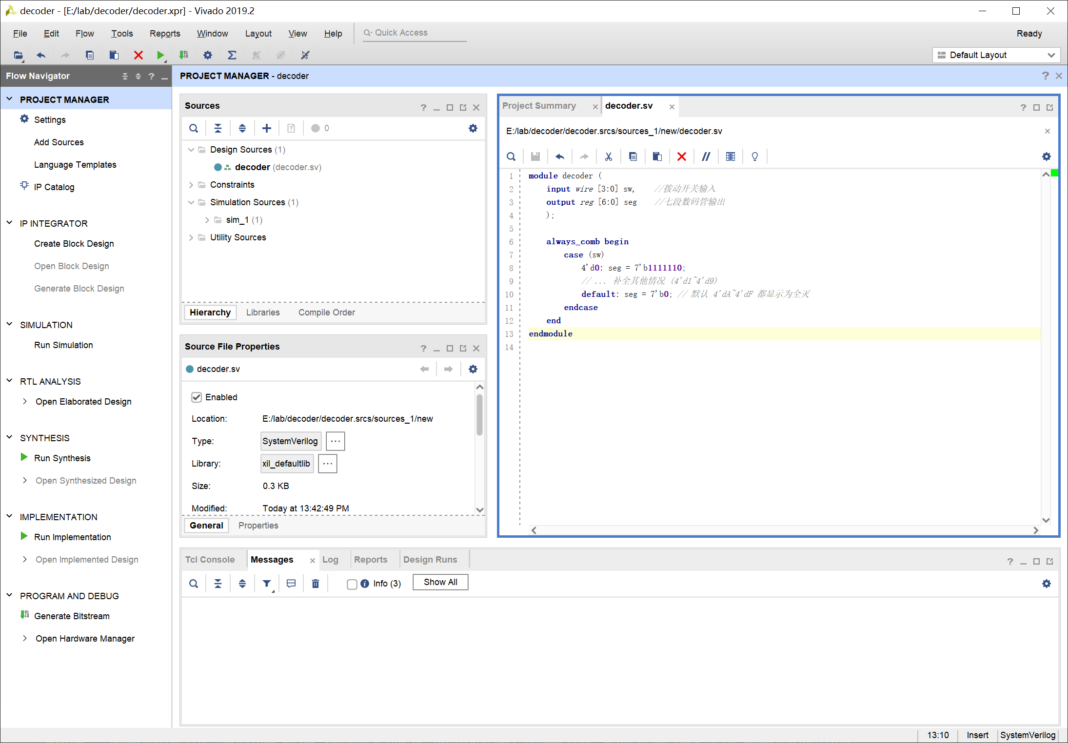 输入 decoder 为创建文件的名称,注意文件类型选择为 SystemVerilog: